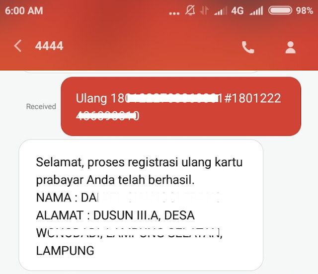 Melakukan registrasi ulang melalui sms ke nomor 4444 dengan format ulang <spasi>nik#nomor kk#.
