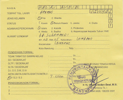 Sedikit informasi tentang kartu kuning, bahwa kartu kuning di keluarkan oleh dinas tenaga kerja di tingkat daerah baik wilayah kota maupun kabupaten.