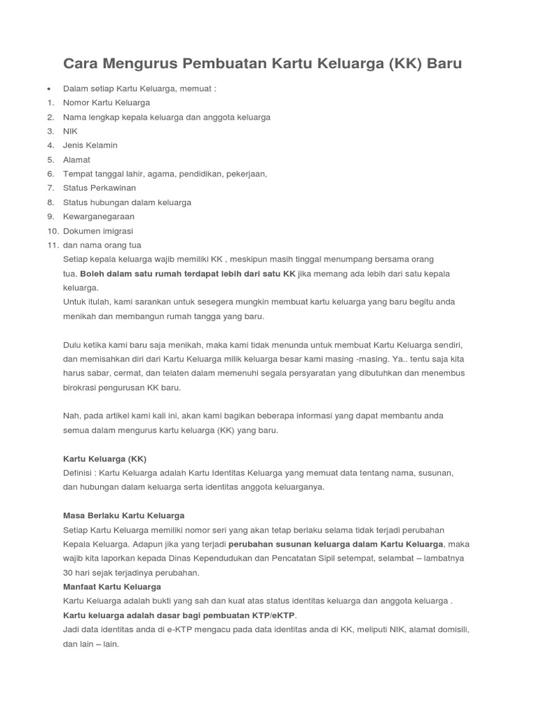 Syarat Membuat Kartu Keluarga 1 hari ngurus di alamat asal (rt, rw, kel, kec, capil), 1 hari skck, 1 hari ke selamat siang, saya mempunyai kenalan seorang pria single parent ingin membuat kartu keluarga baru dan mendaftarkan anaknya (7 tahun) tanpa. Kartu keluarga begitu penting keberadaannya, terutama bagi anda yang baru menikah. Cara membuat kk baru itu mudah. Mulai dari penjelasan fungsinya hingga syarat membuatnya sesuai dengan kondisi yang terjadi.